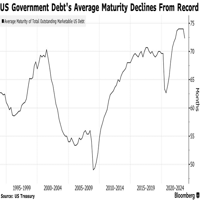 ジャネット・イエレン財務長官(在任期間:2021年1月〜2025年1月)って、ここ最近、ゆっくりだけど確実に国債発行のデュレーション(満期までの期間)を短くしていたよね?